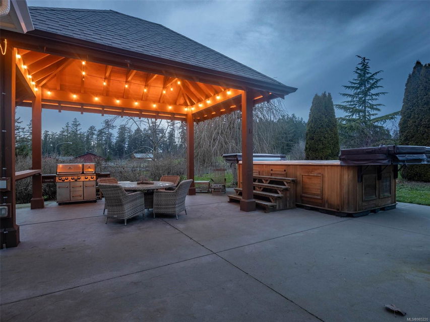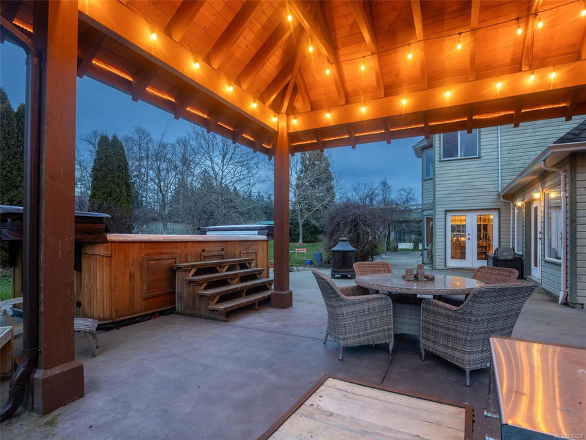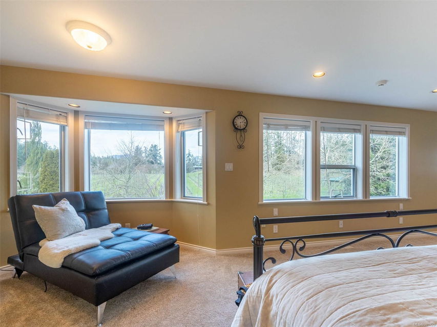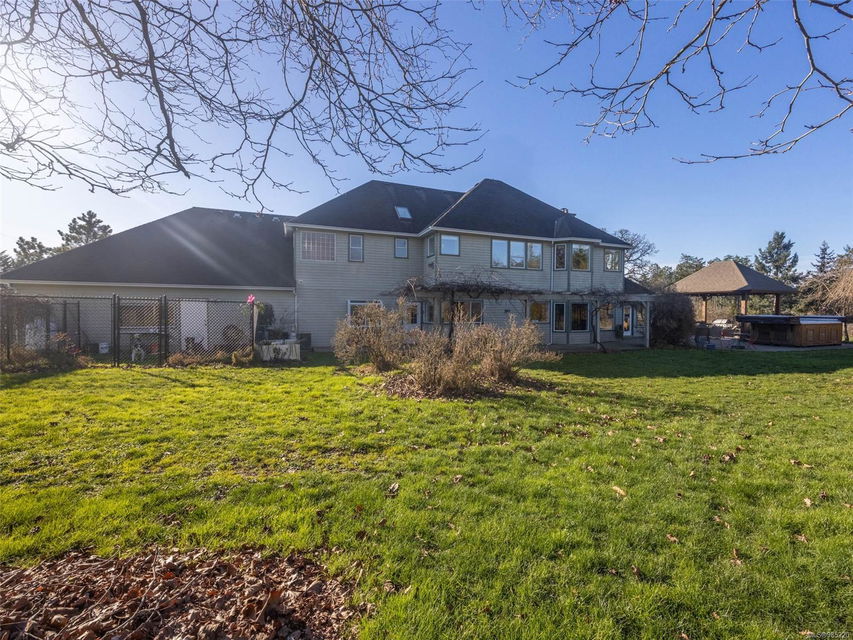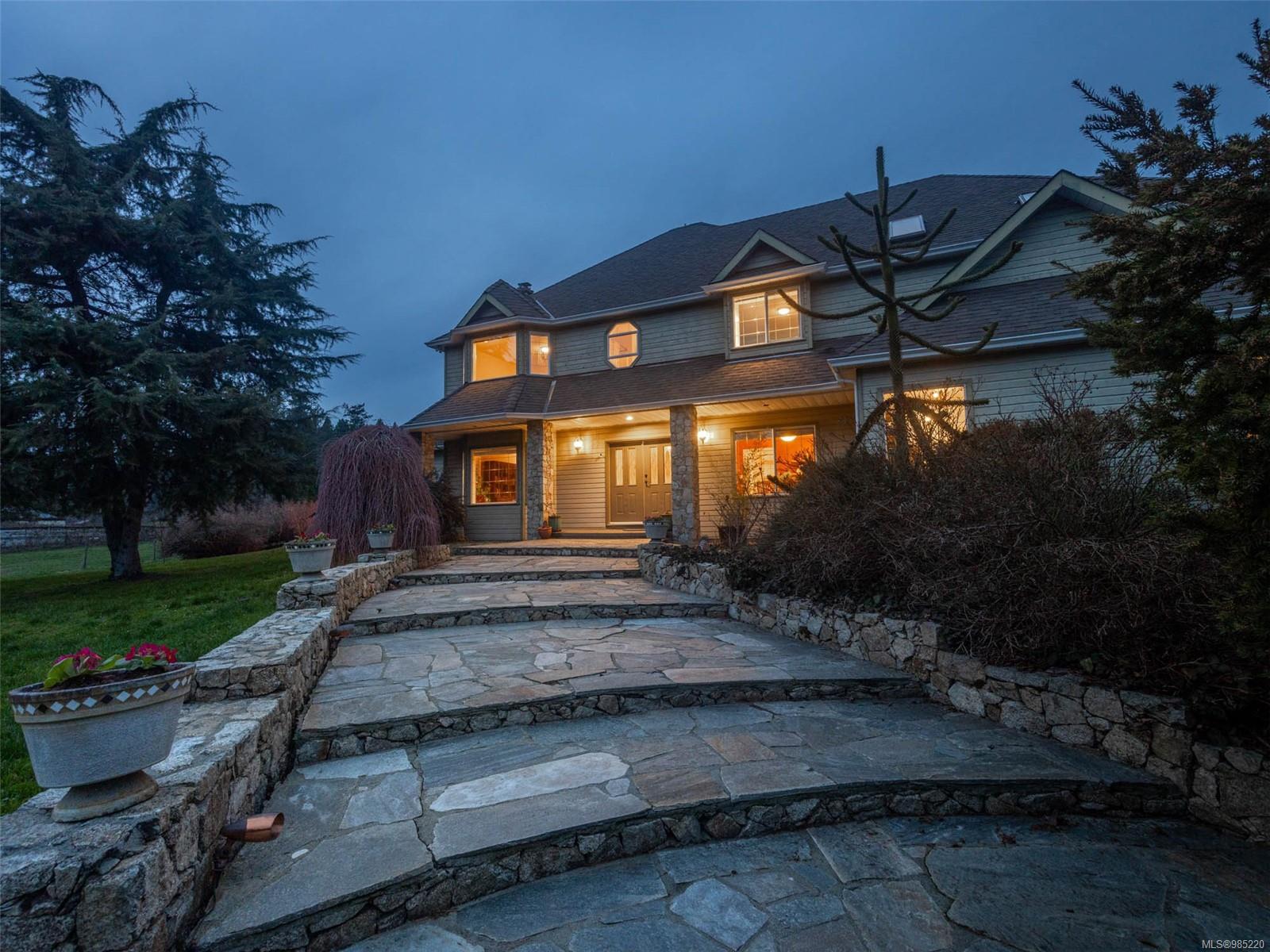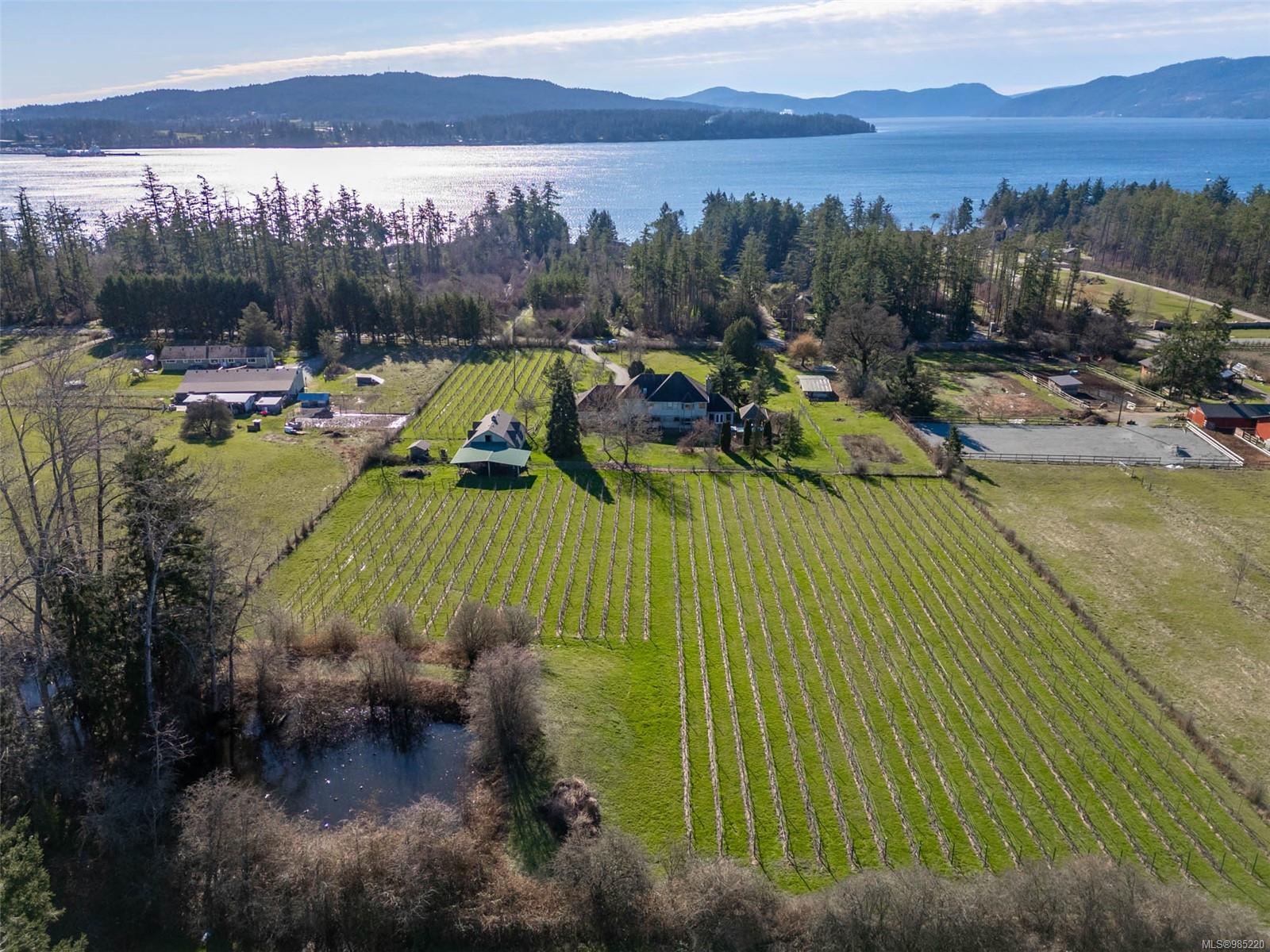 Nestled in the heart of the sought-after Saanich Peninsula, this enchanting 5-acre estate offers a rare opportunity to live in one of the area’s most premium growing regions. Bathed in sunlight, the south-facing fields boast gently sloping land, ideal for a flourishing vineyard and complemented by a charming orchard lining the private driveway. Step inside the meticulously crafted 4200+ sq ft family home and be welcomed by a spacious, sunlit kitchen equipped with top-of-the-line appliances and solid surface countertops. The main level flows effortlessly, featuring a formal dining room and a cozy living room with stunning views of the picturesque surroundings. A stone-surround fireplace anchors the family room, which opens onto a patio complete with a large gazebo and a relaxing swim spa—perfect for entertaining or unwinding in serene luxury. Upstairs, the primary suite is a tranquil retreat, while four additional bedrooms offer comfort and scenic vistas for family or guests. Outside, the versatile barn provides space for pets, hobbies, or farming ventures, enhancing the property’s endless possibilities. Whether you’re captivated by the art of winemaking or simply seeking a peaceful countryside escape, this exceptional property blends elegance and rural charm in a truly unique location. Embrace the lifestyle of your dreams—make this stunning estate your sanctuary today.