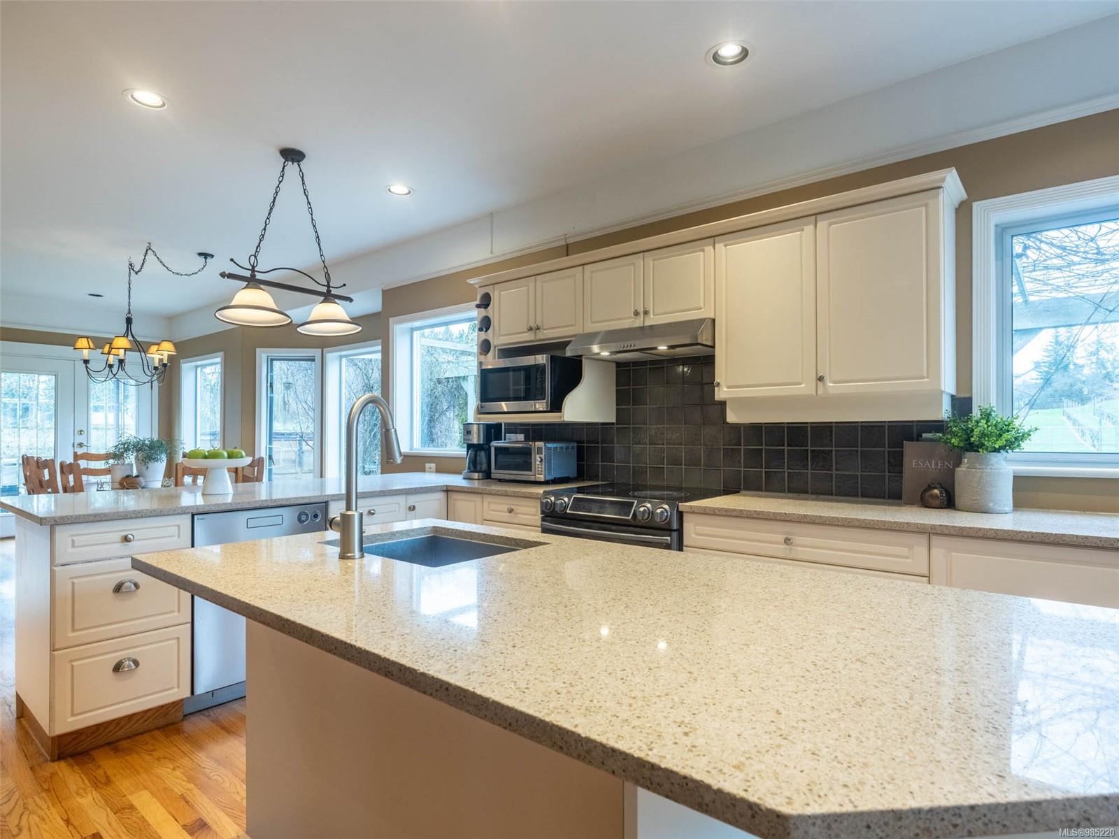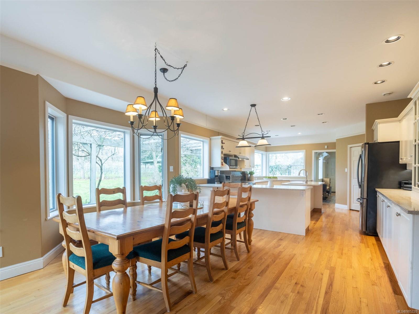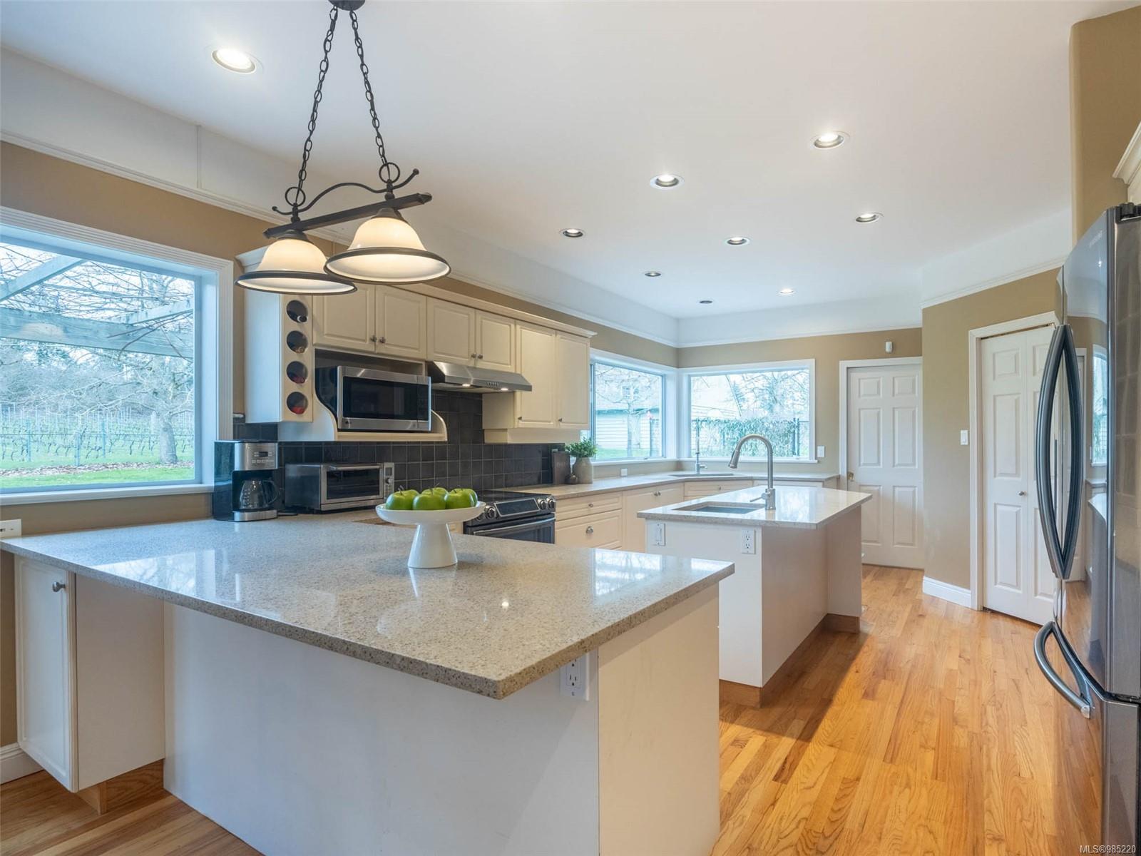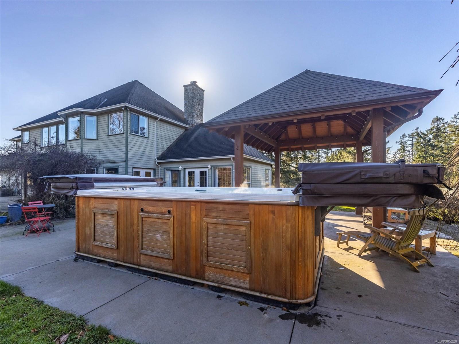 Nestled in the heart of the sought-after Saanich Peninsula, this enchanting 5-acre estate offers a rare opportunity to live in one of the area’s most premium growing regions. Bathed in sunlight, the south-facing fields boast gently sloping land, ideal for a flourishing vineyard and complemented by a charming orchard lining the private driveway. Step inside the meticulously crafted 4200+ sq ft family home and be welcomed by a spacious, sunlit kitchen equipped with top-of-the-line appliances and solid surface countertops. The main level flows effortlessly, featuring a formal dining room and a cozy living room with stunning views of the picturesque surroundings. A stone-surround fireplace anchors the family room, which opens onto a patio complete with a large gazebo and a relaxing swim spa—perfect for entertaining or unwinding in serene luxury. Upstairs, the primary suite is a tranquil retreat, while four additional bedrooms offer comfort and scenic vistas for family or guests. Outside, the versatile barn provides space for pets, hobbies, or farming ventures, enhancing the property’s endless possibilities. Whether you’re captivated by the art of winemaking or simply seeking a peaceful countryside escape, this exceptional property blends elegance and rural charm in a truly unique location. Embrace the lifestyle of your dreams—make this stunning estate your sanctuary today.