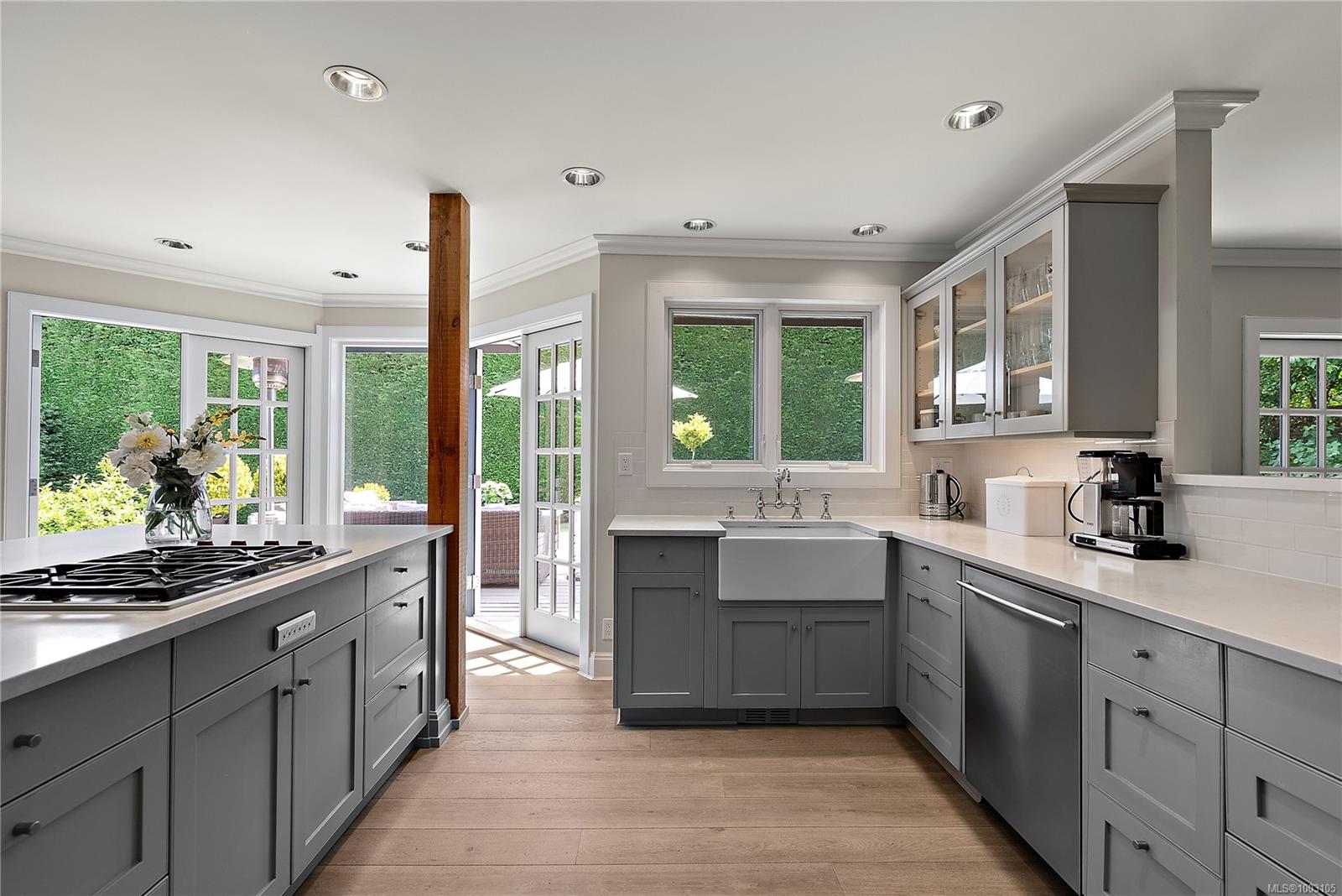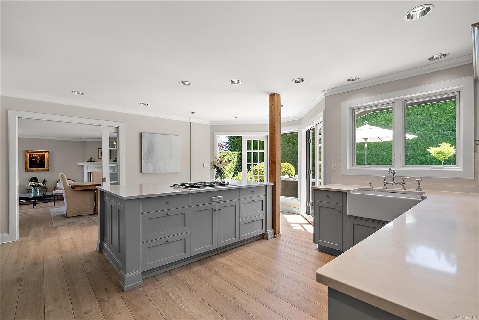 Discover 835 Gulfview Place, a beautifully renovated 3050 sq. ft., 4/5-bed, 3-bath Cordova Bay gem in a highly sought-after, friendly family neighborhood. Enjoy ocean views from the second floor and a private backyard perfect for indoor-outdoor living and entertaining. The chef’s dream kitchen, extensively renovated starting in 2015, features a new island, quartz countertops, high-end Sub-Zero and Wolf appliances, and a farmhouse sink. French doors were added in the kitchen, family, and living rooms, along with a new Pella kitchen window. The laundry room boasts new quartz, flooring, and a relocated hot water tank. All bathrooms have new toilets and countertops, with a master bath gut-renovation including in-floor heating, a new tub, and shower. Additional upgrades include a fireplace in the master bedroom, a custom walk-in closet, new wood blinds, a rebuilt staircase, wainscoting in the entry, and fresh interior and exterior paint. The yard features extended decking and new landscaping. Premium wide-plank hardwood flooring from the Netherlands flows throughout the home. This vibrant community offers fantastic hiking and walking trails, with easy access to the beach and Grant Park trails. The Galloping Goose trail is nearby for scenic bike rides to downtown or Sidney. Enjoy proximity to farm markets, nurseries, Mattick’s Farm, Red Barn, and golf courses. Broadmead Village, just minutes away, provides all essential shopping. Excellent schools like Royal Oak Elementary and Claremont High are also close by.