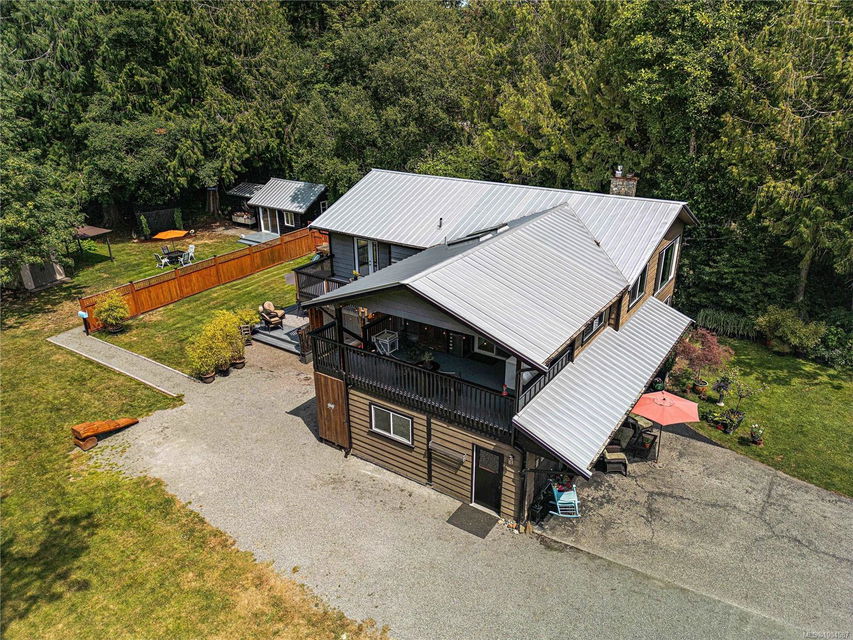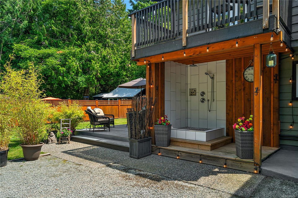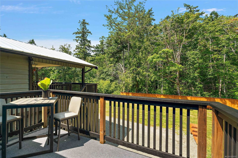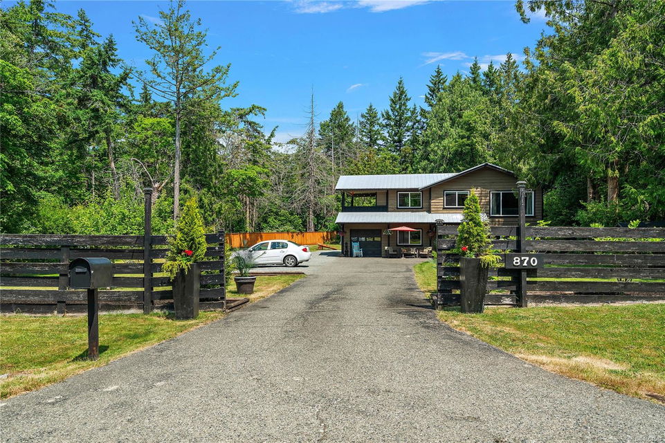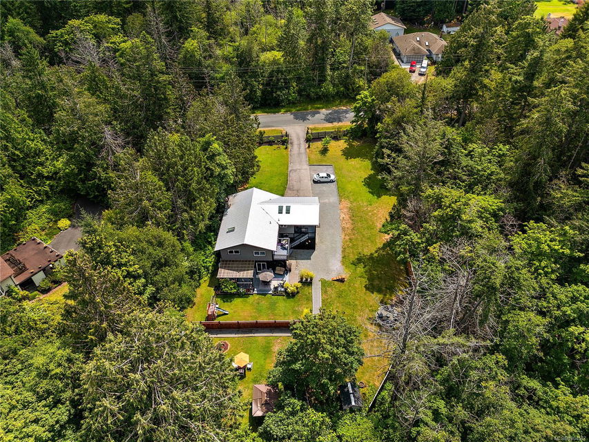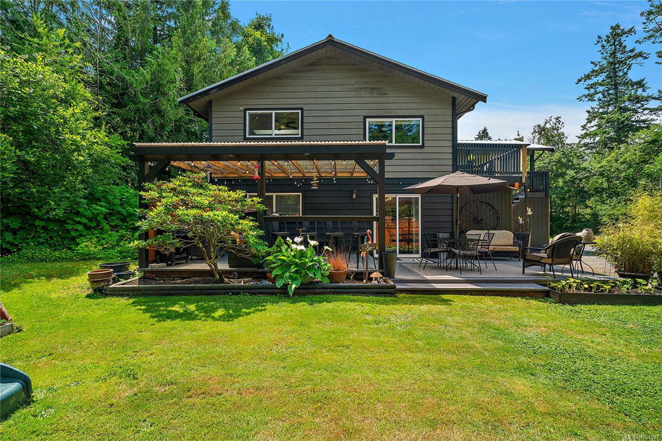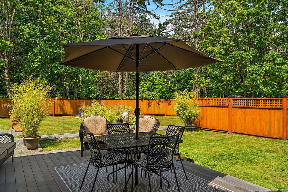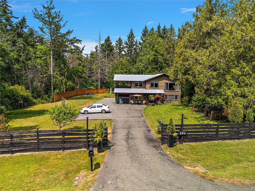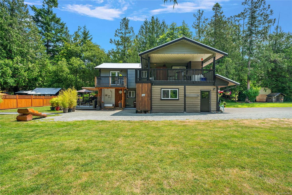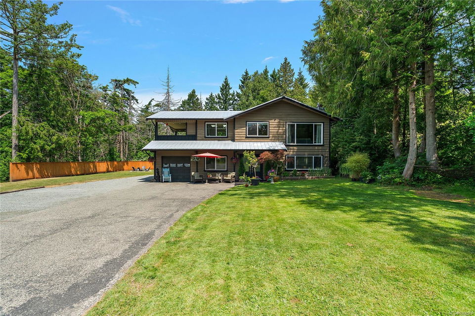 Experience the best of Deep Cove living at 870 Woodcreek Drive. This spacious 2,796 sq.ft. 4-bedroom, 4-bath home with a detached studio sits on a sunny, level completely cleared and very usable one-acre lot offering exceptional privacy—bordered on two sides by parkland. The main level features a bright open layout and a cozy propane fireplace. The updated kitchen is designed for both style and function with granite countertops, skylights, and subway tile backsplash. The primary suite offers a walk-in closet and a beautifully renovated 3-piece ensuite. Step outside onto two generous decks that overlook the expansive, sun-soaked backyard—perfect for relaxing or entertaining. The flexible layout includes a 2-bedroom lower-level suite with a 3-piece bath, ideal for extended family or as a mortgage helper. Also on the lower level is a large laundry area and a double-sized single car garage with ample storage. This property is built for an indoor/outdoor lifestyle. Host gatherings at the outdoor kitchen, rinse off in the outdoor shower, or enjoy evenings around the firepit. Multiple decks and a roughed-in hot tub area offer additional outdoor living space, and the detached studio adds versatility for a home office or creative retreat. A newer metal roof adds peace of mind, and there’s abundant parking, including space for RVs. Located on a quiet street just minutes from Deep Cove Elementary, Deep Cove Market, marinas, wineries, the ferry terminal, airport, and all the shops and services of Sidney. Offering comfort, flexibility, and endless outdoor enjoyment, this unique property captures the very best of West Coast living.