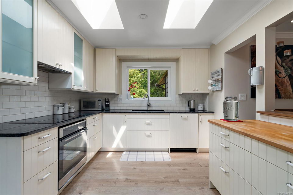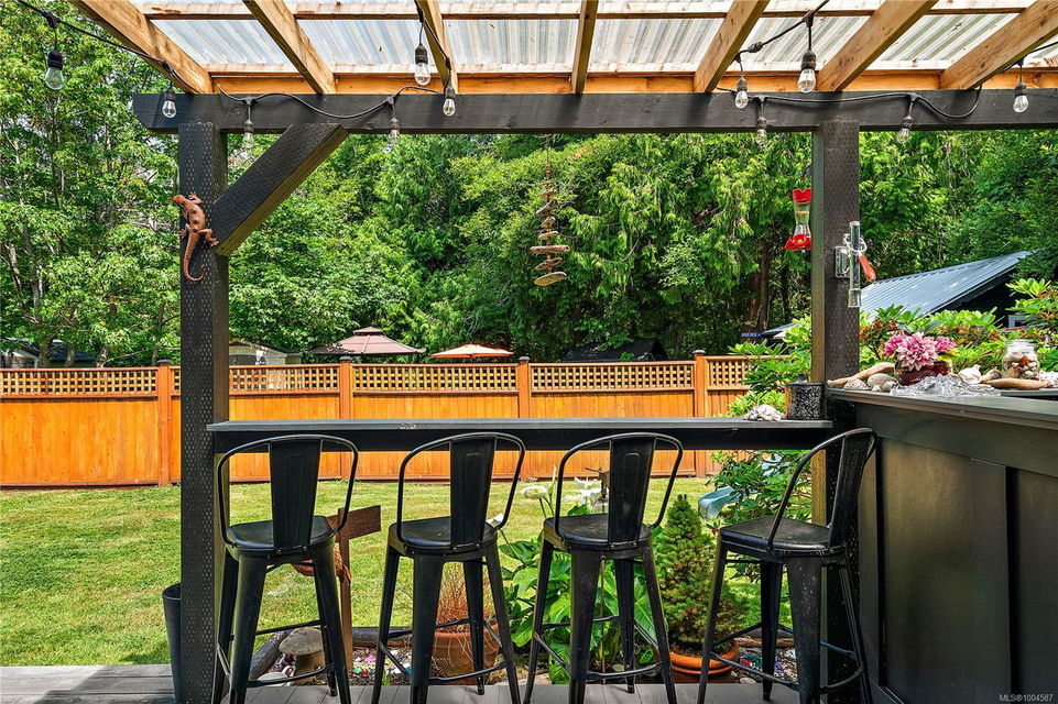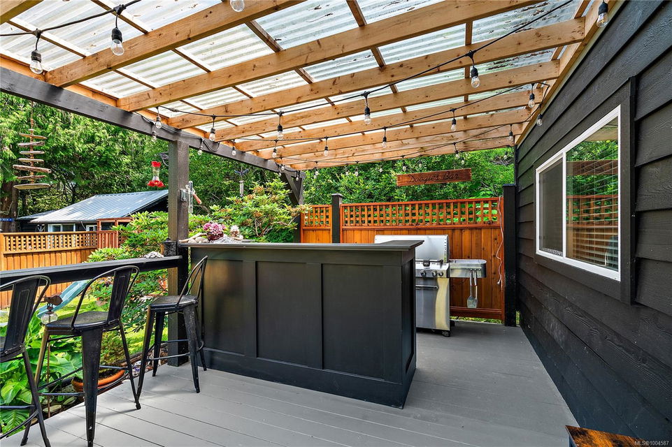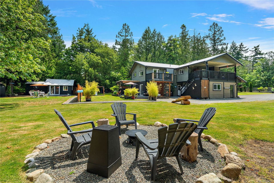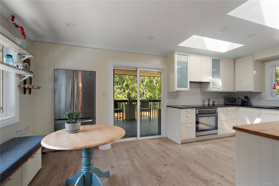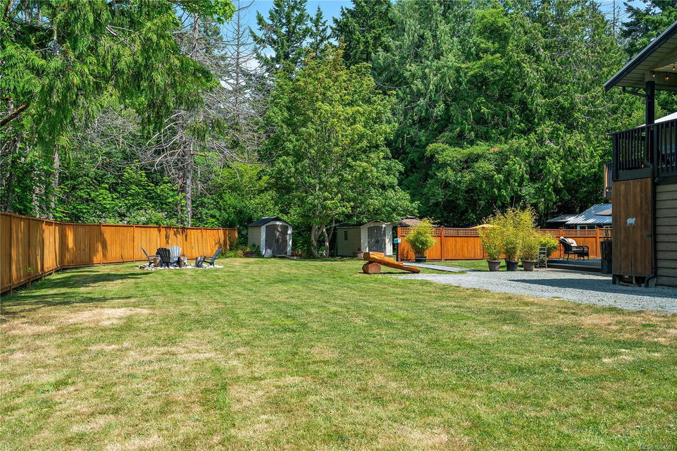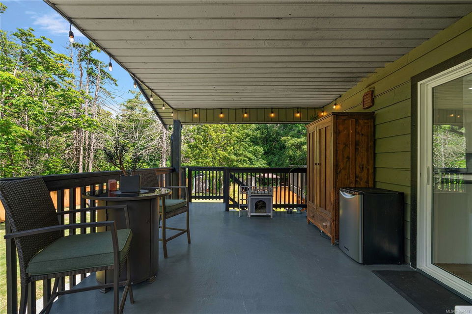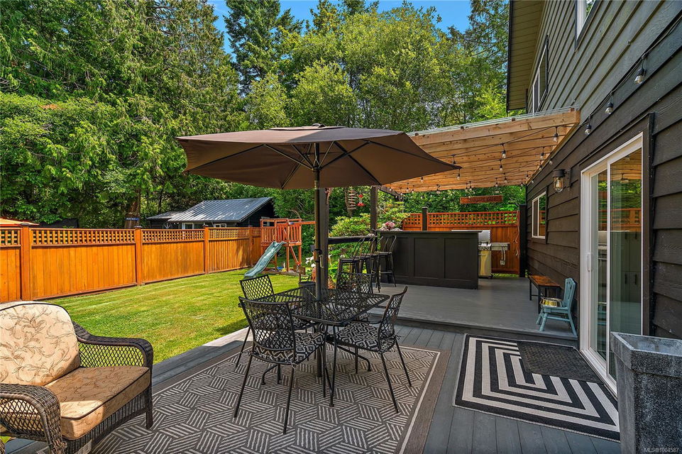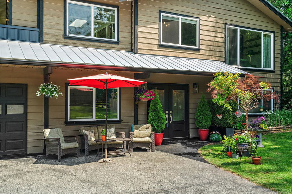 Experience the best of Deep Cove living at 870 Woodcreek Drive. This spacious 2,796 sq.ft. 4-bedroom, 4-bath home with a detached studio sits on a sunny, level completely cleared and very usable one-acre lot offering exceptional privacy—bordered on two sides by parkland. The main level features a bright open layout and a cozy propane fireplace. The updated kitchen is designed for both style and function with granite countertops, skylights, and subway tile backsplash. The primary suite offers a walk-in closet and a beautifully renovated 3-piece ensuite. Step outside onto two generous decks that overlook the expansive, sun-soaked backyard—perfect for relaxing or entertaining. The flexible layout includes a 2-bedroom lower-level suite with a 3-piece bath, ideal for extended family or as a mortgage helper. Also on the lower level is a large laundry area and a double-sized single car garage with ample storage. This property is built for an indoor/outdoor lifestyle. Host gatherings at the outdoor kitchen, rinse off in the outdoor shower, or enjoy evenings around the firepit. Multiple decks and a roughed-in hot tub area offer additional outdoor living space, and the detached studio adds versatility for a home office or creative retreat. A newer metal roof adds peace of mind, and there’s abundant parking, including space for RVs. Located on a quiet street just minutes from Deep Cove Elementary, Deep Cove Market, marinas, wineries, the ferry terminal, airport, and all the shops and services of Sidney. Offering comfort, flexibility, and endless outdoor enjoyment, this unique property captures the very best of West Coast living.
