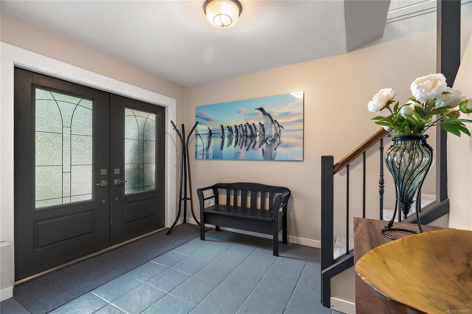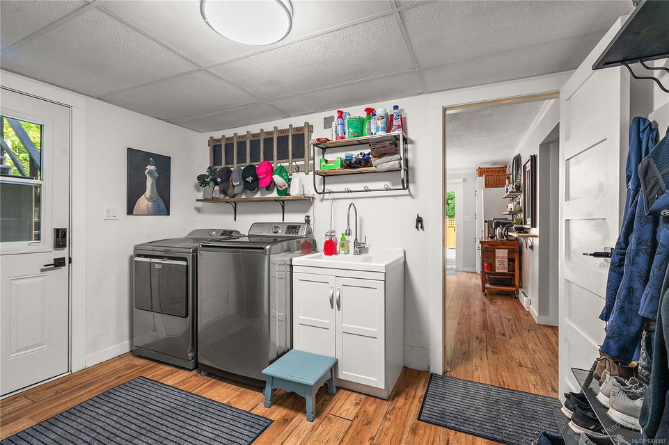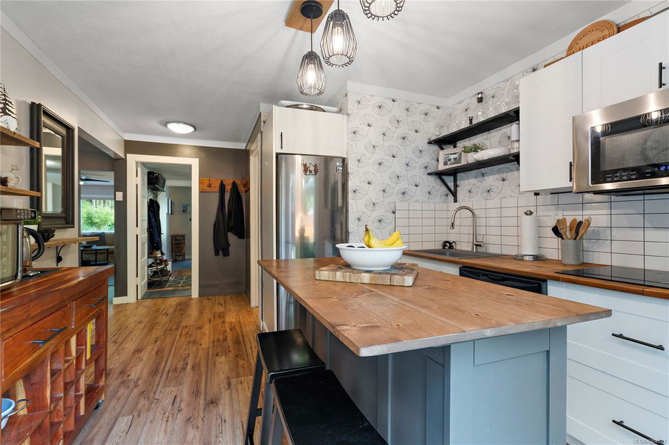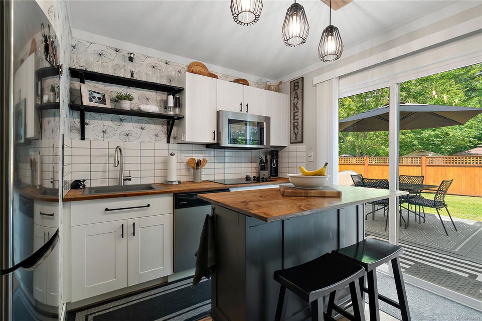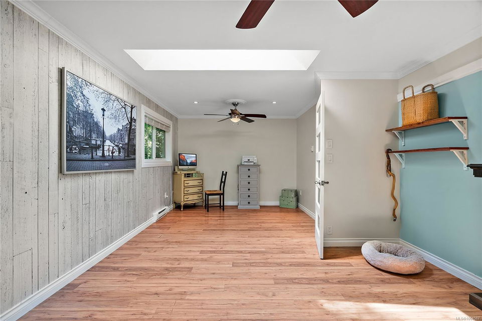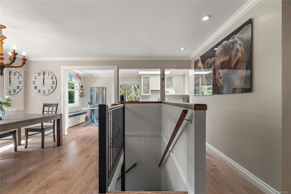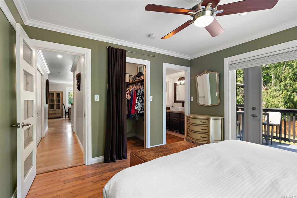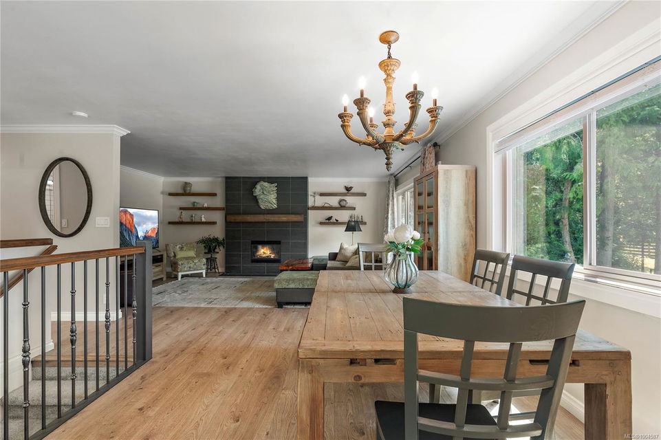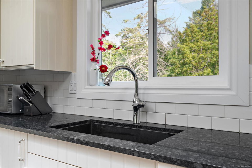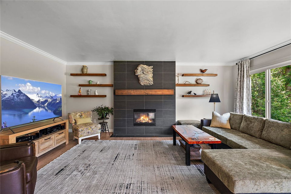 Experience the best of Deep Cove living at 870 Woodcreek Drive. This spacious 2,796 sq.ft. 4-bedroom, 4-bath home with a detached studio sits on a sunny, level completely cleared and very usable one-acre lot offering exceptional privacy—bordered on two sides by parkland. The main level features a bright open layout and a cozy propane fireplace. The updated kitchen is designed for both style and function with granite countertops, skylights, and subway tile backsplash. The primary suite offers a walk-in closet and a beautifully renovated 3-piece ensuite. Step outside onto two generous decks that overlook the expansive, sun-soaked backyard—perfect for relaxing or entertaining. The flexible layout includes a 2-bedroom lower-level suite with a 3-piece bath, ideal for extended family or as a mortgage helper. Also on the lower level is a large laundry area and a double-sized single car garage with ample storage. This property is built for an indoor/outdoor lifestyle. Host gatherings at the outdoor kitchen, rinse off in the outdoor shower, or enjoy evenings around the firepit. Multiple decks and a roughed-in hot tub area offer additional outdoor living space, and the detached studio adds versatility for a home office or creative retreat. A newer metal roof adds peace of mind, and there’s abundant parking, including space for RVs. Located on a quiet street just minutes from Deep Cove Elementary, Deep Cove Market, marinas, wineries, the ferry terminal, airport, and all the shops and services of Sidney. Offering comfort, flexibility, and endless outdoor enjoyment, this unique property captures the very best of West Coast living.