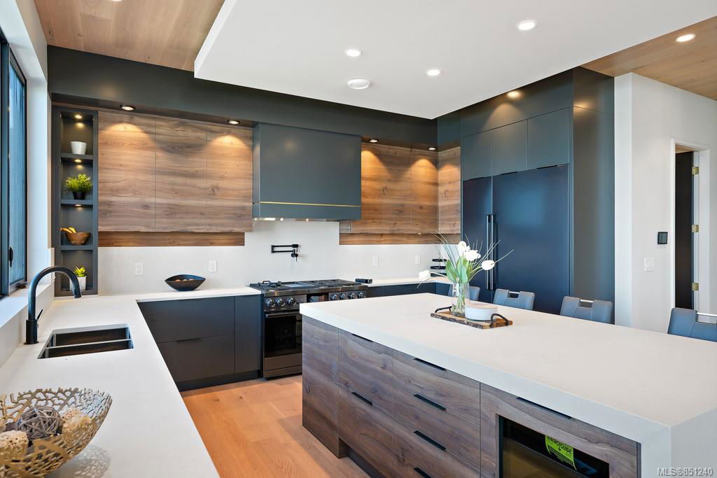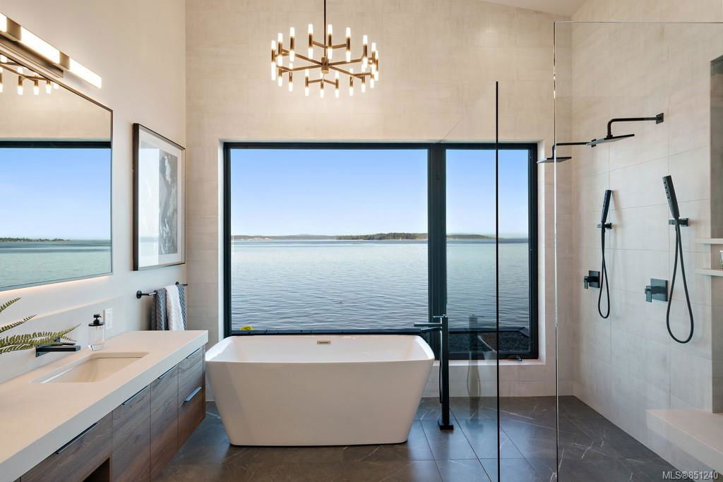 Rarely does a home with this level of exquisite finishing come to market. Prominently positioned on low bank Lochside waterfront with one of the best walking beaches in North Saanich. “The View”….well its truly stunning, “The build”….By GtMann so unsurpassed quality, “The design”…..by Spaciz Design and its breathtaking. The home was built to entertain with soaring ceilings in the expansive great room featuring floor to ceiling venetian plater fireplace and nano doors leading to party sized deck with built in gas fireplace feature and outdoor kitchen. Kitchen is a work of art all on its own with the tray ceiling, blacked-out appliances, quartz waterfalls and wine bar area. 4 Beds and 3 baths round out the top floor with a to die for master and ensuite. Other details include gated entry, pantry, mud room, engineered hardwood ceiling details, floating staircase, floating vanities, media room, black and gold themed hardware and detail. Come and see what true refinement looks like.