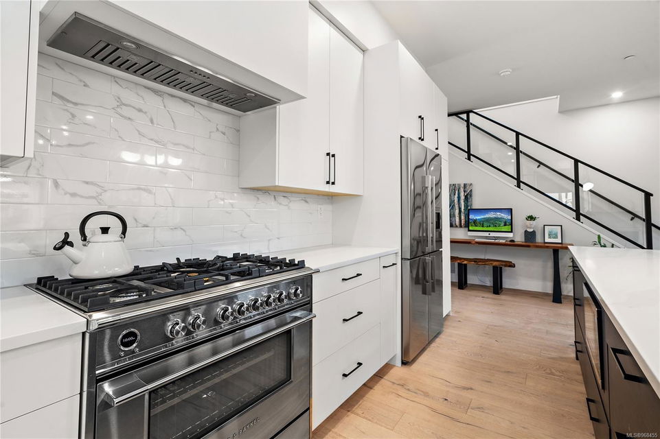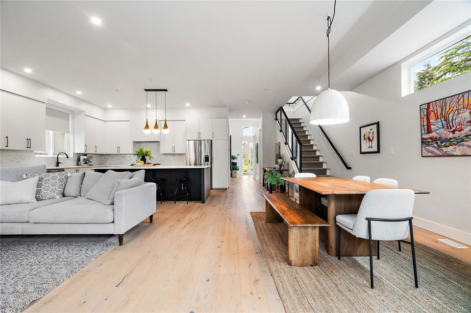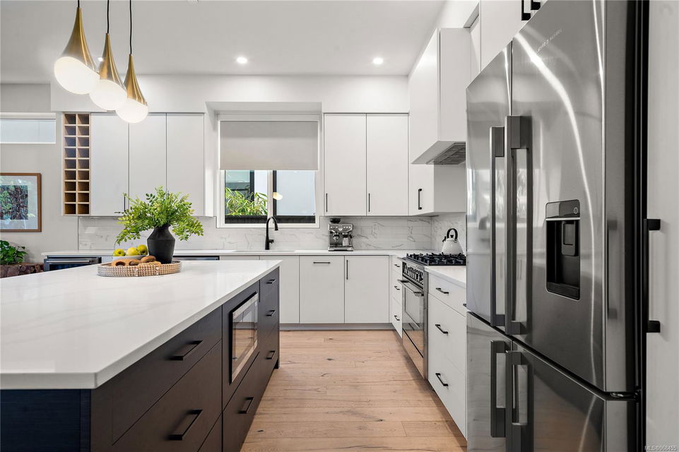 We are pleased to present this luxurious 4-bedroom, 3-bathroom home, spanning 2,511 sq/ft, nestled in charming Sidney by the Sea! This 2022 residence offers an unparalleled lifestyle with exceptional living standards and excellent walkability. From the moment you step inside, you’ll be captivated by the exquisite finishings and thoughtfully designed floorplan. The foyer greets you with 15′ ceilings, leading you to the impressive Great Room featuring 10′ ceilings and a stunning Chef’s kitchen with a large quartz island, perfect for entertaining. The main floor effortlessly extends to a flat, fully fenced, south-facing rear yard, accommodating various family needs such as outdoor dining, gardening, entertaining and just relaxing in the sunshine. The 4th bedroom can serve as a den or family room. Upstairs, you’ll find 9′ ceilings, a breathtaking primary suite with a spacious ensuite and walk-in closet, two additional generously-sized bedrooms, a second full bathroom, and a convenient laundry room. The crown jewel of this home is the exclusive rooftop patio, offering spectacular ocean views. All of this ideally located close to Lochside’s oceanfront walk, various beaches, and Sidney’s delightful shops, this home is sure to impress.