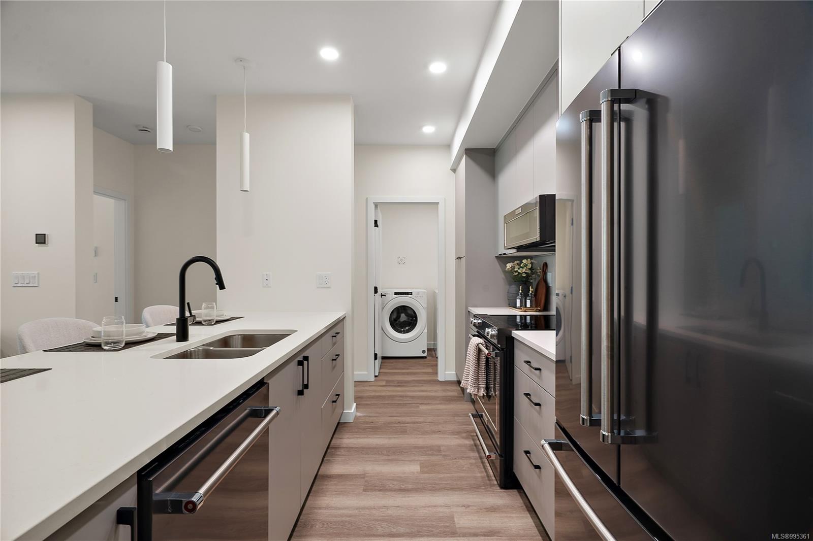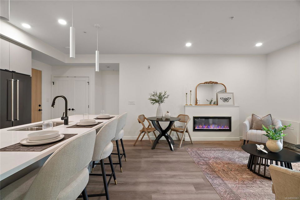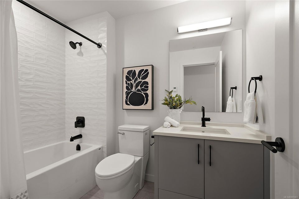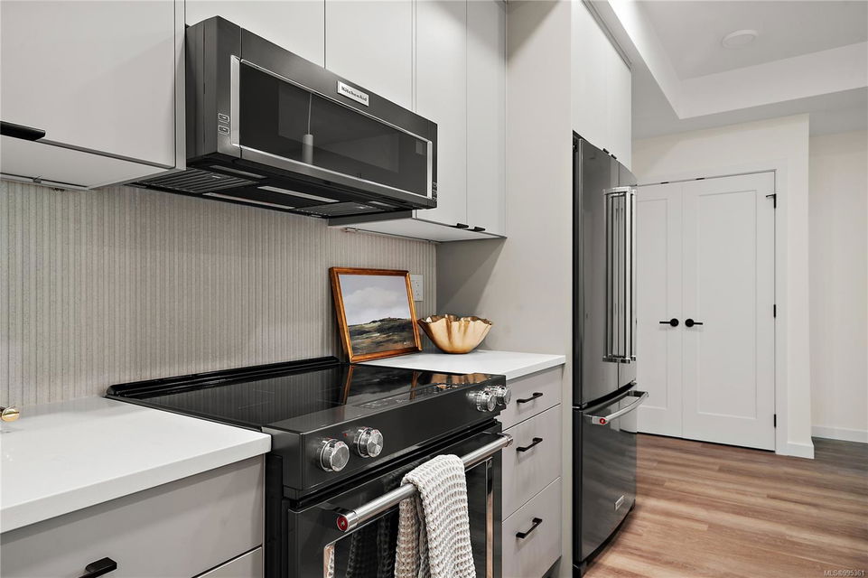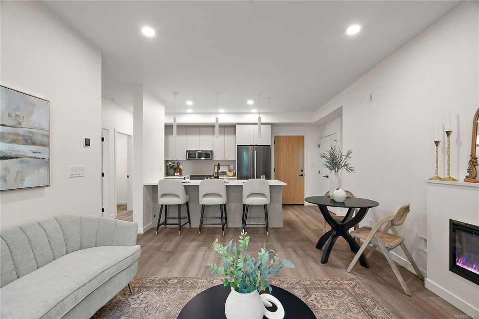Move in this year! Located in the heart of Esquimalt Village, The Proxima is perfectly positioned for a life full of adventure, experiences, & amenities w/ Saxe Point Park, local breweries, Esquimalt Market, shopping, & the Archie Browning Sports Centre just a stone’s throw away. Unit B304 is located within the back Bellus building in a spacious 2 bedroom, 2 bathroom floor plan with quartz countertops, eat-in kitchen island, and black stainless KitchenAid appliance package. This unit is inclusive of one underground parking stall and storage locker. Brought to you by award winning GT Mann Contracting and superior design by Spaciz Design. The grand glass lobby welcomes residents to enjoy the state of the art gym, atrium, and courtyard – live life your way at The Proxima.