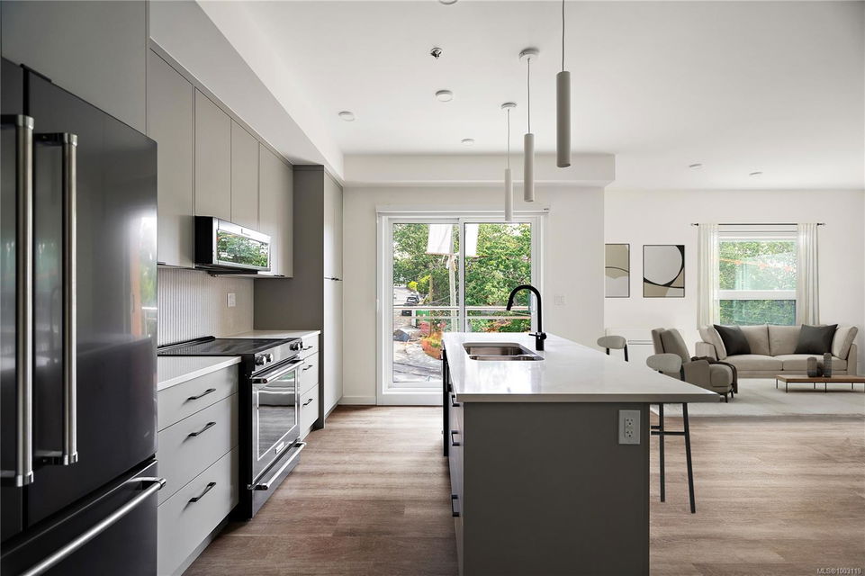 Move in this year to this southwest facing 1 bedroom corner unit where natural light floods through! Located in the back Bellus building, this is an interior courtyard and Lampson facing unit perched up on the 4th floor inclusive of parking and storage. Finished in our popular Caligo colour scheme mixing neutral & modern tones with quartz countertops, large eat-in island, and black stainless KitchenAid appliance package. Brought to you by award winning GT Mann Contracting and superior design by Spaciz Design. The grand glass lobby welcomes residents to enjoy the state of the art gym, atrium, and courtyard. Located in the heart of Esquimalt Village, The Proxima is perfectly positioned for a life full of adventure, experiences, & amenities w/ Saxe Point Park, local breweries, Esquimalt Market, shopping, & the Archie Browning Sports Centre just a stone’s throw away.